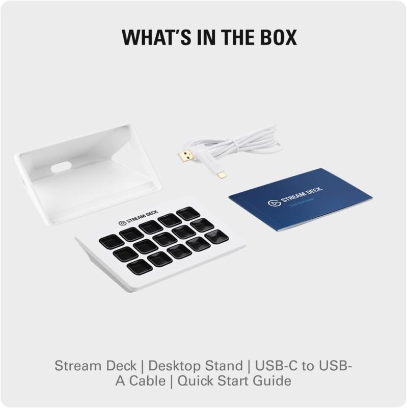£99.99 – £399.00Price range: £99.99 through £399.00Elgato Stream Deck MK.2 White – Studio Controller, 15 macro keys, trigger actions in apps and software like OBS, Twitch, YouTube and more, works with Mac and PC