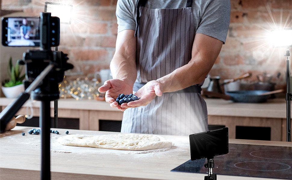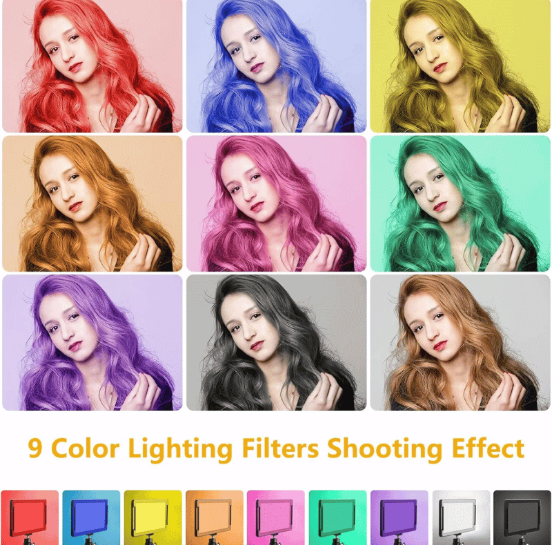 • [ Multiple Color and Brightness Levels ]: 360° Full Color will be make your photography more colorful. LED light panel adopts 70pcs led beads, illuminance up to 1100Lux(0.5M). Use index lamp beads, CRI≥97,TLCI≥97, RA≥97 to provide a more realistic light source for your shooting and it can brighten up your videos or pictures. 10 Levels of Brightness: easily switch color temperature between 5400K and 5800K dimmable to meet all your needs in different circumstances.