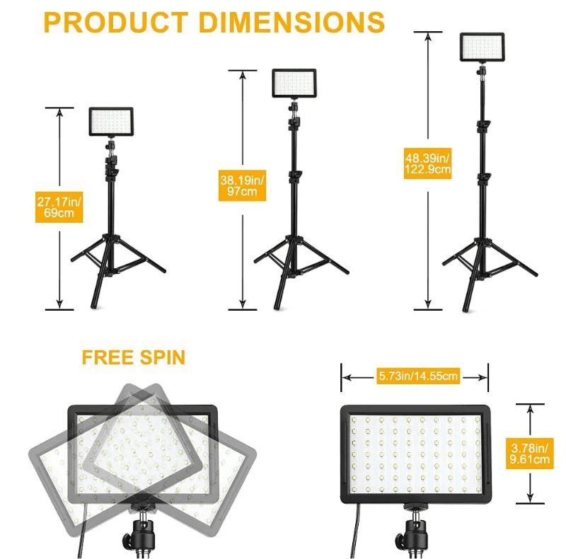 • This professional upgraded LED video light is suitable for your photography activities. All three led video lights can go up to the same height of 48.39 inches. It can be widely used for lighting control of photography and video and adapts to various scences, whether live broadcast, portrait shotting, beauty makeup, YouTube Video Shooting, or filling light for different environments.