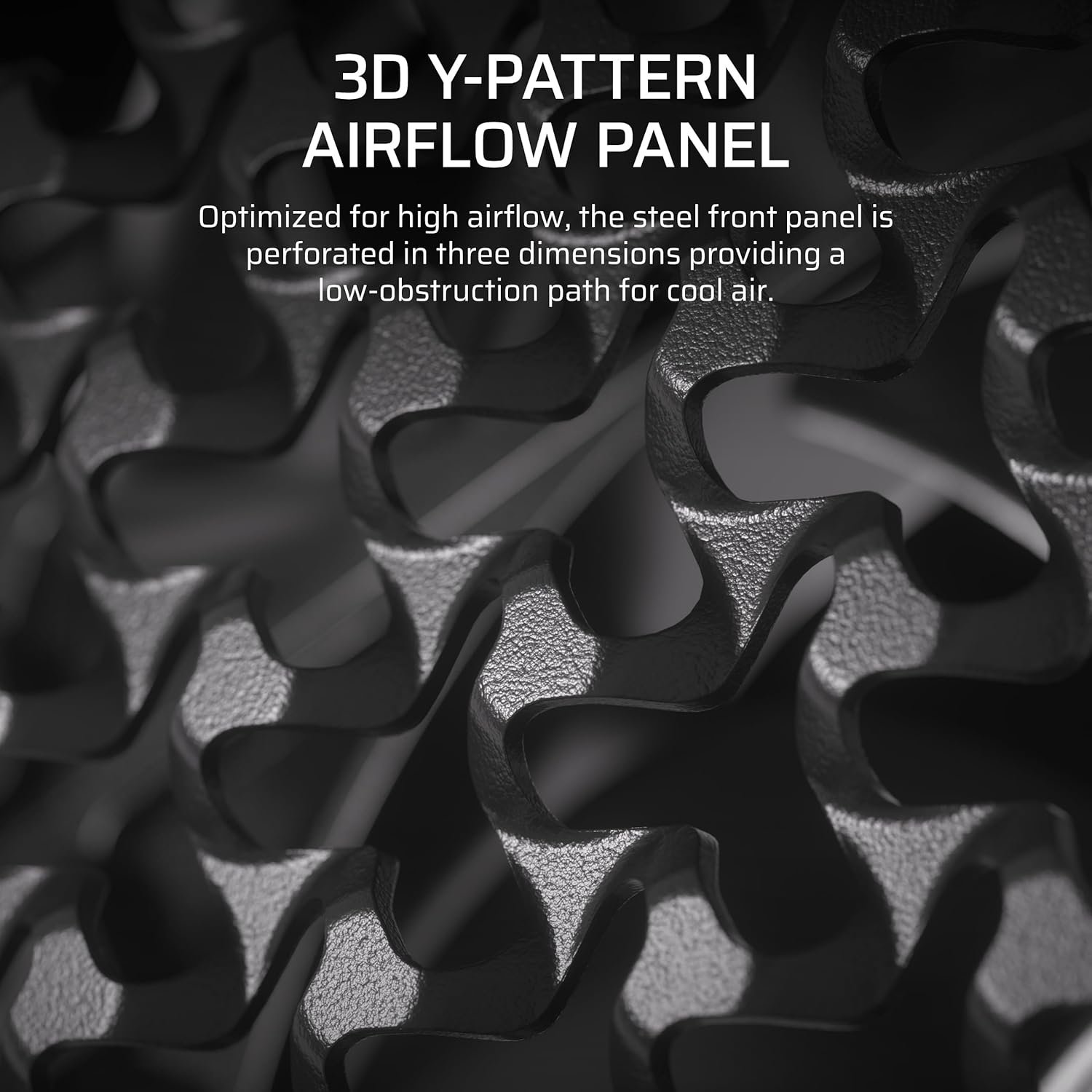 - 3D Y-Pattern Airflow Panel – Optimised for high airflow and minimal restriction, the steel front panel is perforated in three dimensions with a Y-pattern that provides a low-obstruction path for cool air