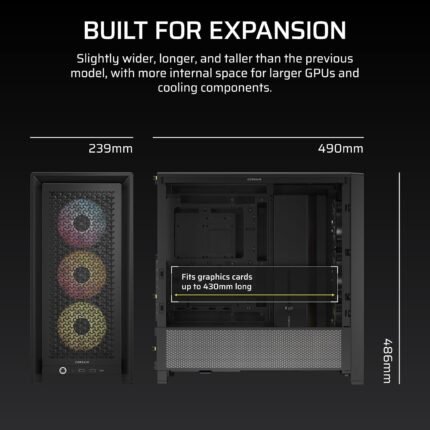 CORSAIR FRAME 4000D RS ARGB Modular Mid-Tower ATX PC Case – High Airflow, 3x Pre-Installed RS ARGB Fans